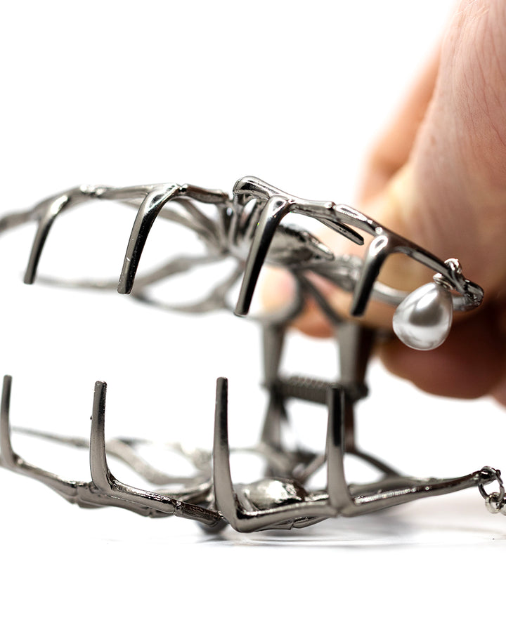 The Arachnid Hair Clip is more than just a functional accessory - it's a statement piece that will enhance any look. The striking webbed design commands attention, while the durable steel build ensures it will hold up through daily wear. Whether you're embracing a moody, mysterious aesthetic or simply want to add a touch of gothic flair, this clip is the perfect finishing touch.