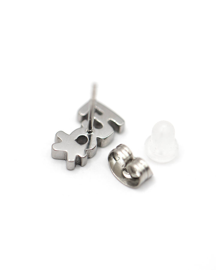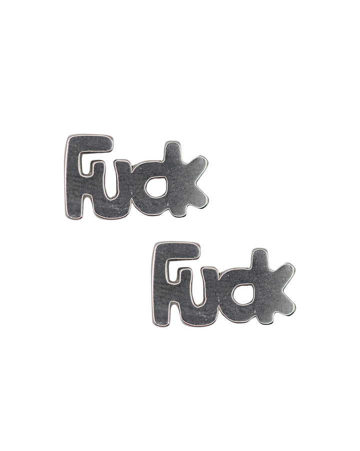 EARRINGS PAIR - 'F*CK' - SILVER SURGICAL STEEL Surgical Steel 316L Butterfly Backing Silver
