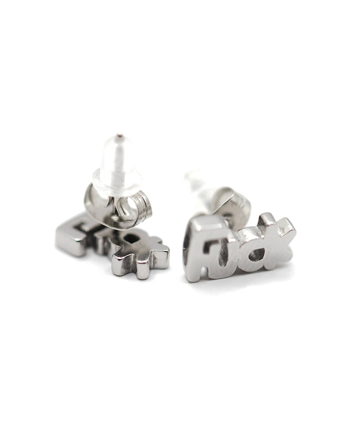 EARRINGS PAIR - 'F*CK' - SILVER SURGICAL STEEL