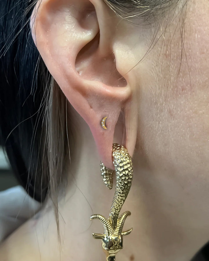 Want to upgrade your new piercing? Try the Golden Moonstone CZ Crystal Set Internally Threaded Attachment. Suitable for any internally threaded 16g jewellery. Specifications: Gauge - 16 Gauge Colour - Gold pvd...