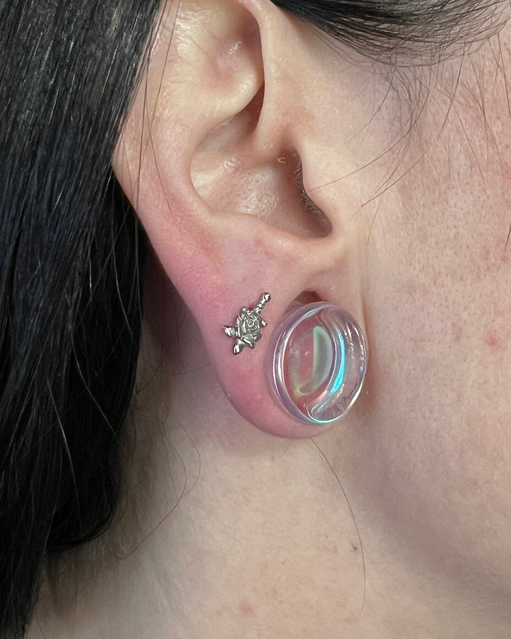Want to upgrade your new piercing? Try the timeless 'it's not a phase mum' classic Rose and Dagger design Internally Threaded Attachment. Suitable for any of our compatible internally threaded 16g jewellery posts.